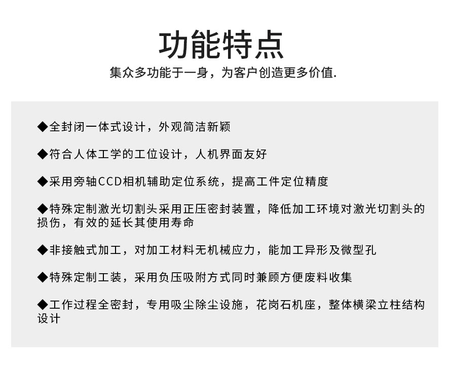 皮秒玻璃激光切割機具有切割精度高、任意形狀切割、無錐度、熱影響區域極小、切割過程中不產生任何間隙、加工邊緣無碎屑、毛刺和殘渣等優點。